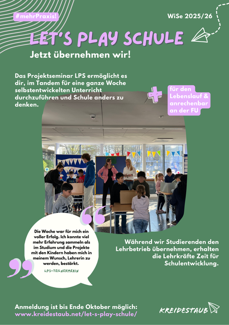 Wenn du Teil der nächsten Runde LPS im WiSe 2025/26 - diesmal an einer Berliner Schule - sein möchtest, kannst du dich hier anmelden: